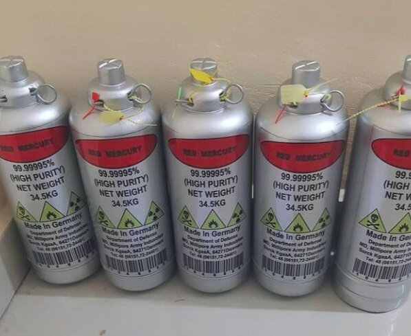Rotes flüssiges Quecksilber 20/20 mit einer Reinheit von 99,9999 %. Mindestprobe 5 kg = 35.500,00 USD. 1. Rotes Quecksilber 20/20 = 2.500,00 USD/Gramm. 2. Rotes Quecksilber 27/27 = 1.500,00 USD/Gramm. 3. 34,5 kg Flasche/Kolben/Zylinder rotes Quecksilber = 250.000,00 USD.